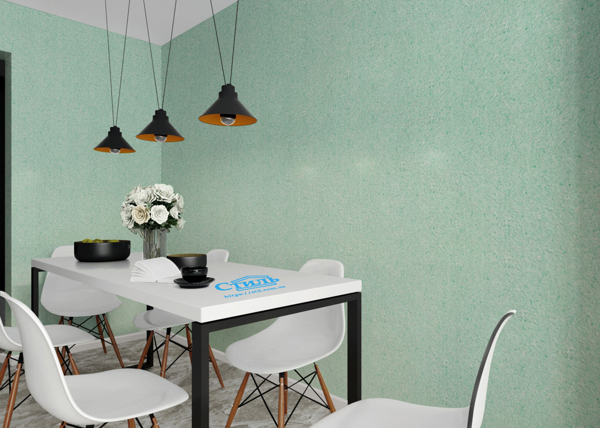 Ультратонкие шелковые волокна красиво тонируют материал, придавая ему нежный зеленый оттенок и изысканный блеск. Зеленый цвет в интерьере успокаивает нервную систему, дает отдохнуть глазам, снимает усталость. Тип 115 жидких обоев отлично подойдет при отделке спальни, детской комнаты и других помещений небольших размеров, особенно если они оформлены в классическом стиле или стиле кантри.