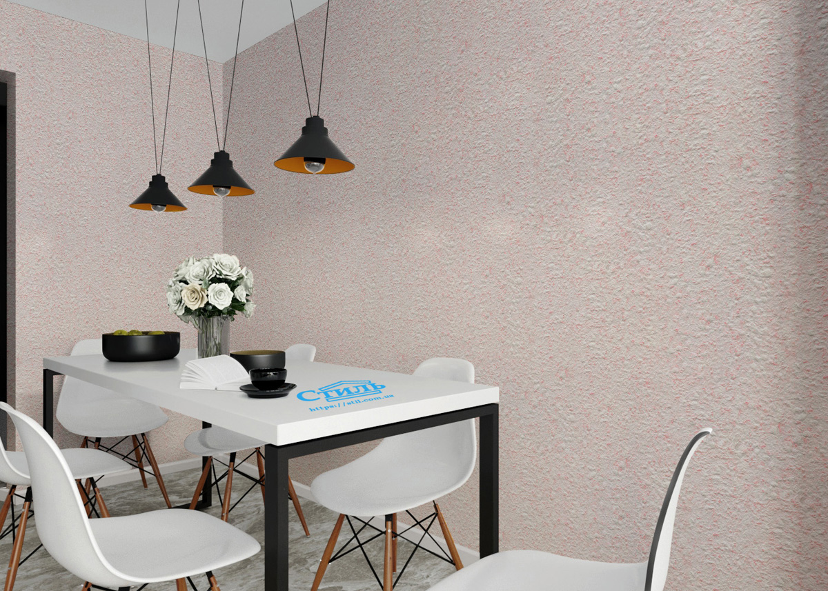 Тип 140 жидких обоев ТМ «Стиль» выполнен в розовом цвете. Это не едко-розовый тон, который раздражает глаза и вызывает по крайней мере у представителей мужского пола жгучее желание поскорее покинуть комнату с такой агрессивной цветовой отделкой. Это нежный, едва заметный розовый оттенок, который материалу придают текстильные нити. На фоне светлой основы он выглядит очень изысканно и воздушно.