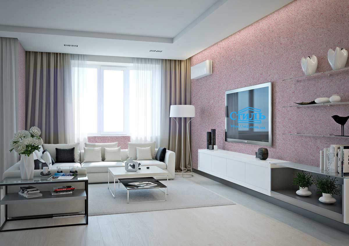 Мягкая пряжа и нежный шелк, добавляемые в состав жидких обоев тип 178 ТМ «Стиль», придают материалу уникальную схожесть с роскошной тканью. Эффект усиливается за счет изысканной цветовой палитры в розовых и коричневых тонах.