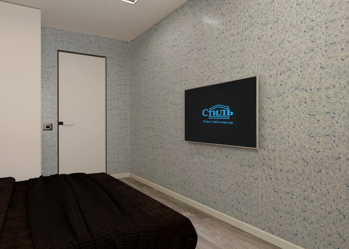 Текстильные нити при нанесении на стену или потолок формируют красивый и необычный рисунок, который контрастно выделяется на фоне более светлой основы.