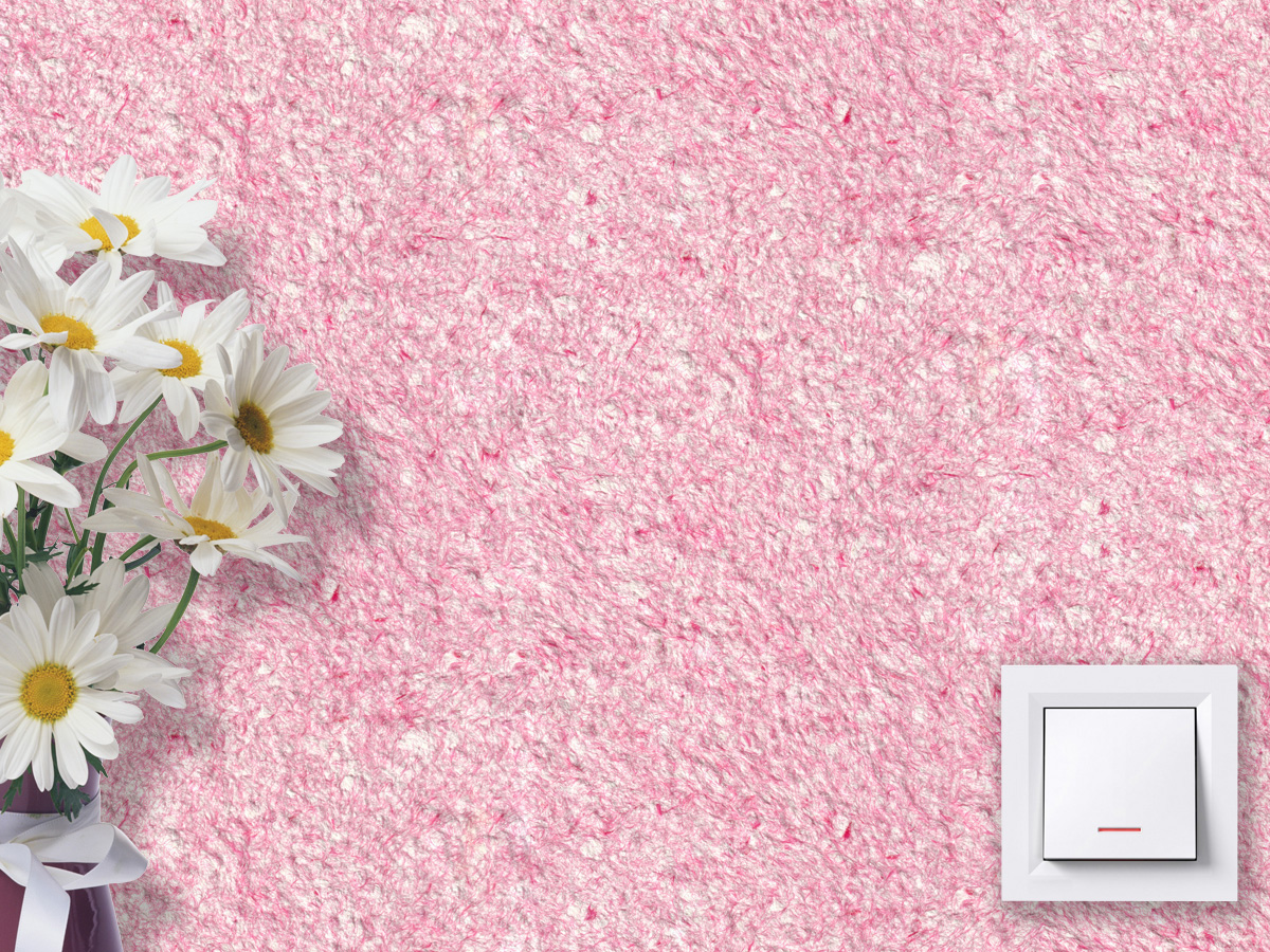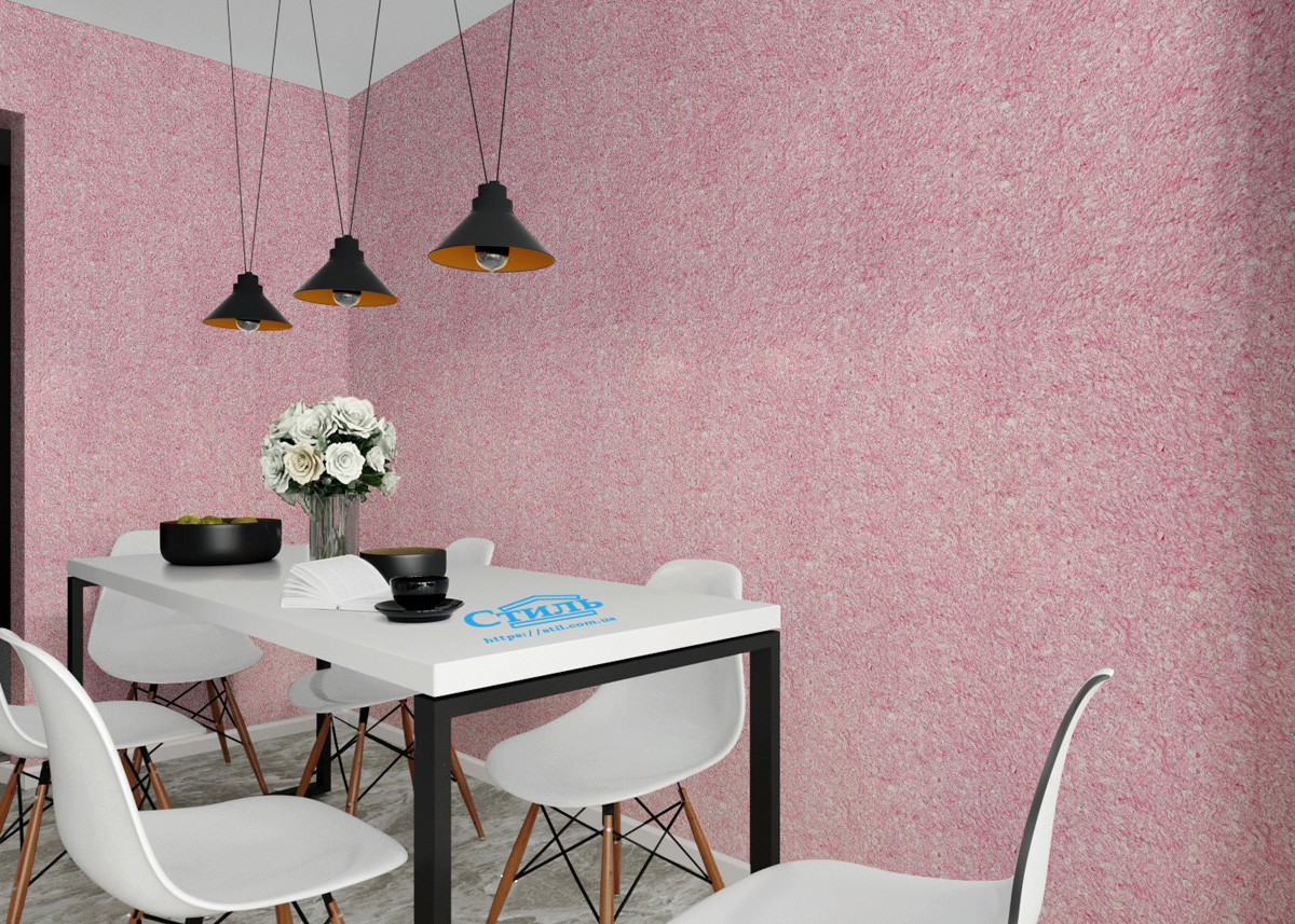 Главной фишкой жидких обоев тип 20 ТМ «Стиль» является бесподобный розовый тон, обеспечиваемый присутствием в их составе тончайших волокон искусственного шелка. Равномерно распределяясь по покрытию, они формируют интересный и необычный текстильный рисунок.