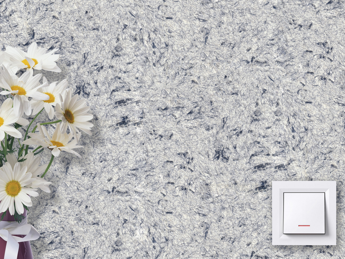 Жидкие обои тип 208 ТМ «Стиль» восхищают уникальным сочетанием рельефной целлюлозной основы и нежной пряжи синего цвета. При нанесении на стену материал производит впечатление мягкого одеяла, которое уютно укутывает стены.