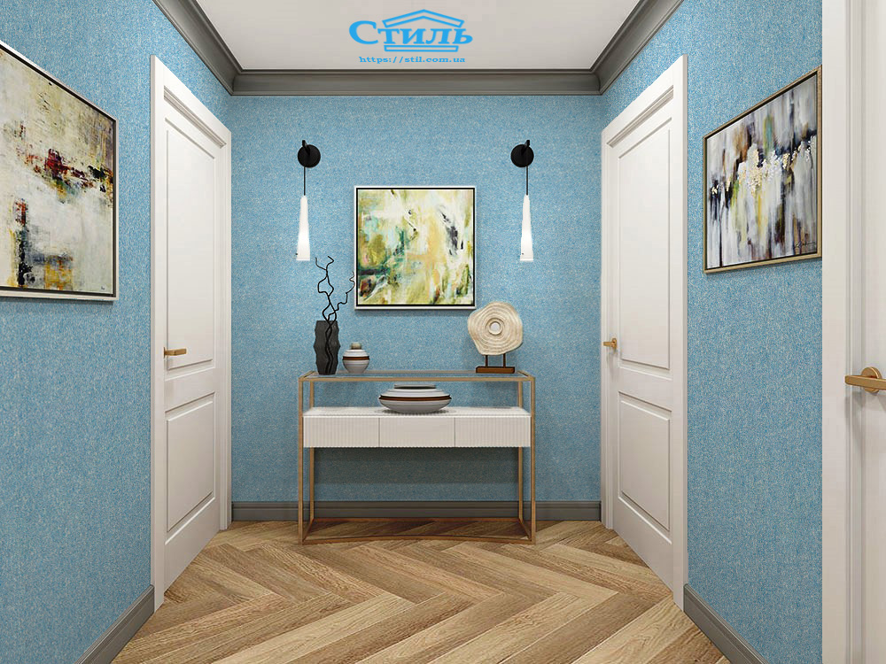 Целлюлозу получают из натуральной древесины. Она не содержит никаких токсичных веществ и полностью безопасна в экологическом плане. К тому же целлюлозные обои имеют эффектный рельеф. Шелковые волокна красиво тонируют материал в нежно-голубой цвет.