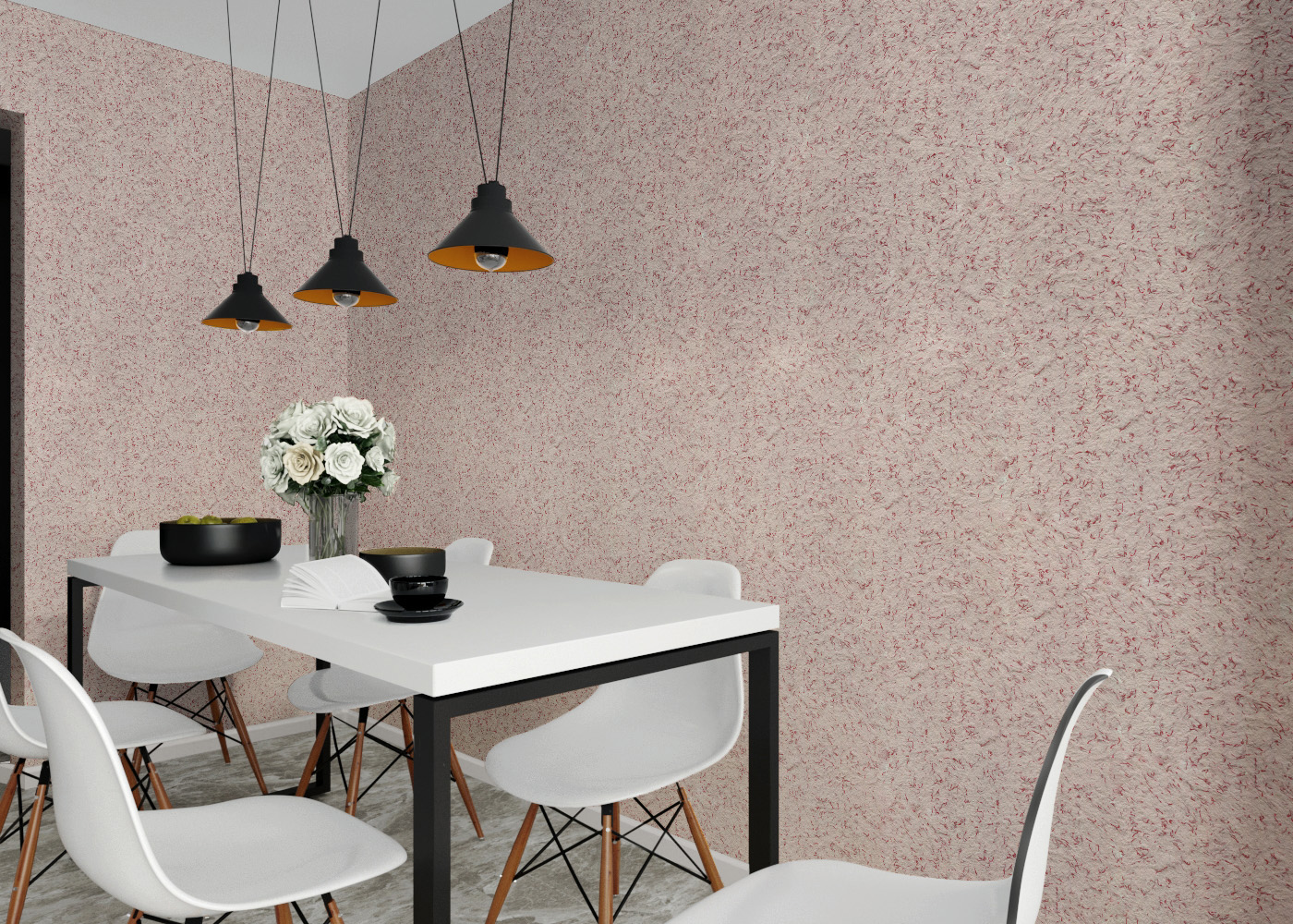 Основная изюминка жидких обоев тип 291 ТМ «Стиль» - контрастный узор, создаваемый красными текстильными нитями на светлом фоне. Благодаря им покрытие выглядит очень интересно и необычно.