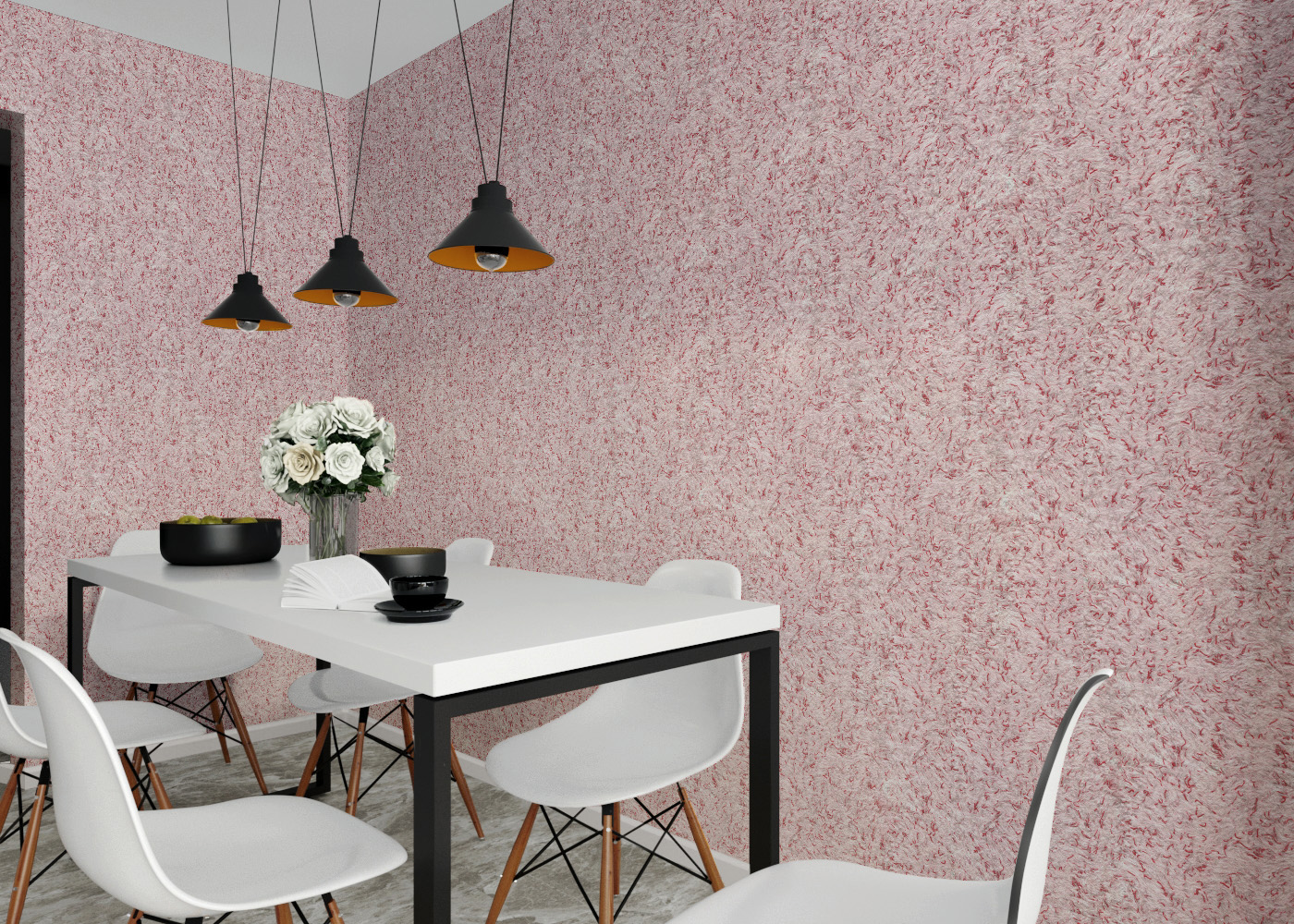 Красные нити эффектно выделяются на более светлом фоне типа 293 жидких обоев и, переплетаясь, создают красивый текстильный рисунок. Цвет получается скорее нежным и утонченным, чем дерзким и бунтарским. Он отлично впишется в интерьер, оформленный в стилях ампир, лофт, хай-тек. Да и всегда актуальная классика ему по плечу.