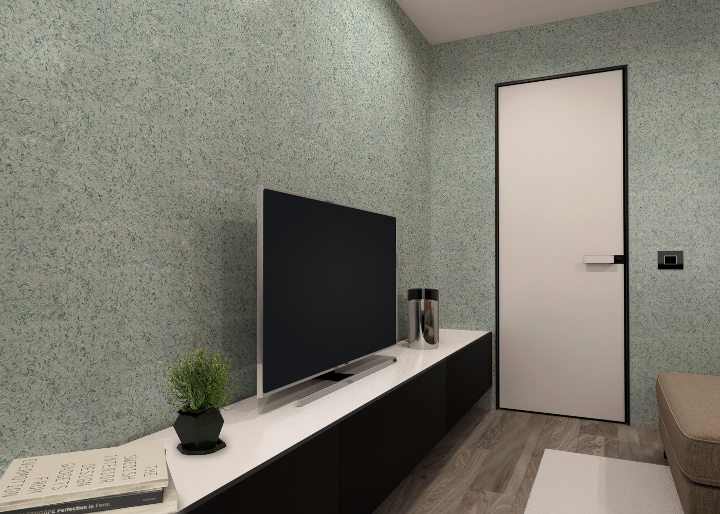 В состав типа 300 жидких обоев также включены шелковые волокна и текстильные нити бирюзового цвета, красиво тонирующие основу. Цвет получается в меру насыщенным и в меру спокойным, что позволяет смело использовать материал и в качестве доминирующего, и в сочетании с материалами других цветов.