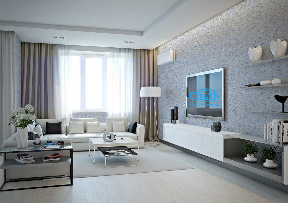 Рекомендуем использовать тип 44 жидких обоев в оформлении интерьера спальни или гостиной в качестве доминирующего материала или в тандеме с покрытиями белого, зеленого, бежевого и серого цвета.
