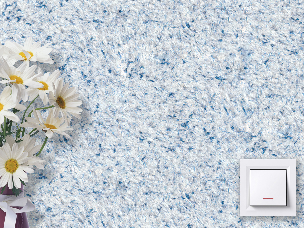 Шелковая основа покрытия гармонично дополняется контрастным узором из синих текстильных нитей. Итоговый цвет материала получается очень нежным и воздушным.