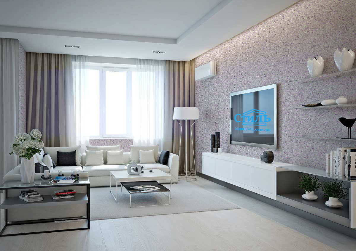 Если вам надоели традиционные интерьеры, рулонные обои с однообразными рисунками и устаревшей цветовой палитрой, обратите внимание на жидкие обои тип 9 ТМ «Стиль». В первую очередь, привлекает внимание их приятный сиреневый оттенок, обеспечиваемый цветными текстильными нитями.